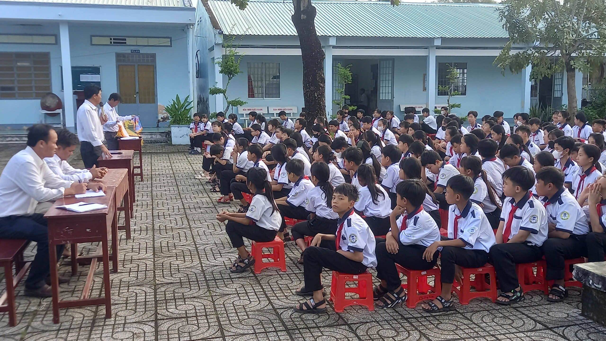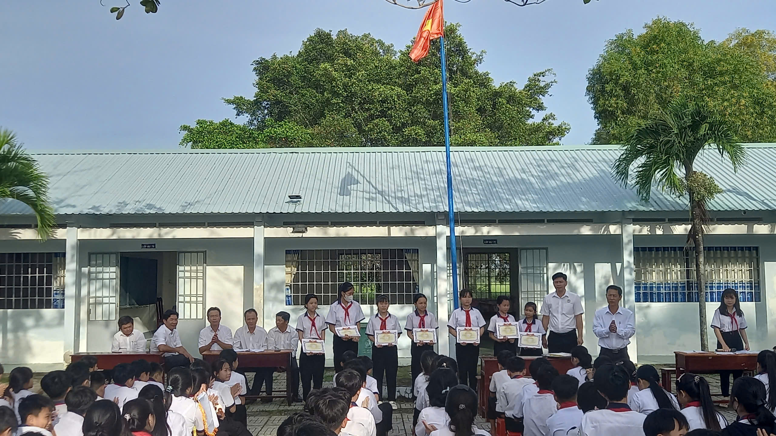 Sáng thứ 2 ngày 15/12/2025 tại sân trường TH&THCS Vĩnh Bình Nam, thầy Bùi Trường Giang – Giáo viên TPT Đội đã tổ chức buổi chào cờ đầu tuần. Tham gia có thầy Trần Thạch Mal – Phó hiệu trưởng, GVCN các khối lớp THCS, các em học sinh THCS. lồng ghép trong giờ chào cờ thầy đã tuyên dương khen thưởng cho những học sinh tham gia viết bài chủ đề 20/11 đạt kết quả cao. Thầy đã đề nghị trường trao tặng giấy khen và tập cho 08 học sinh tham gia.