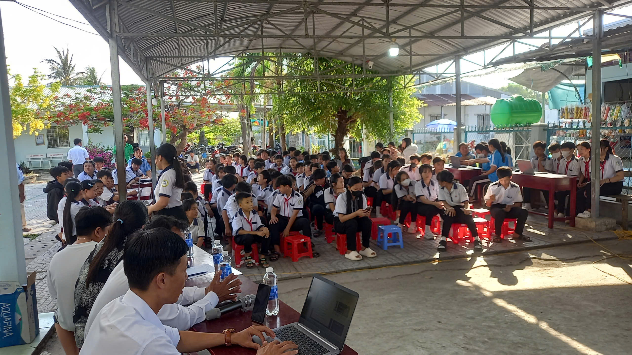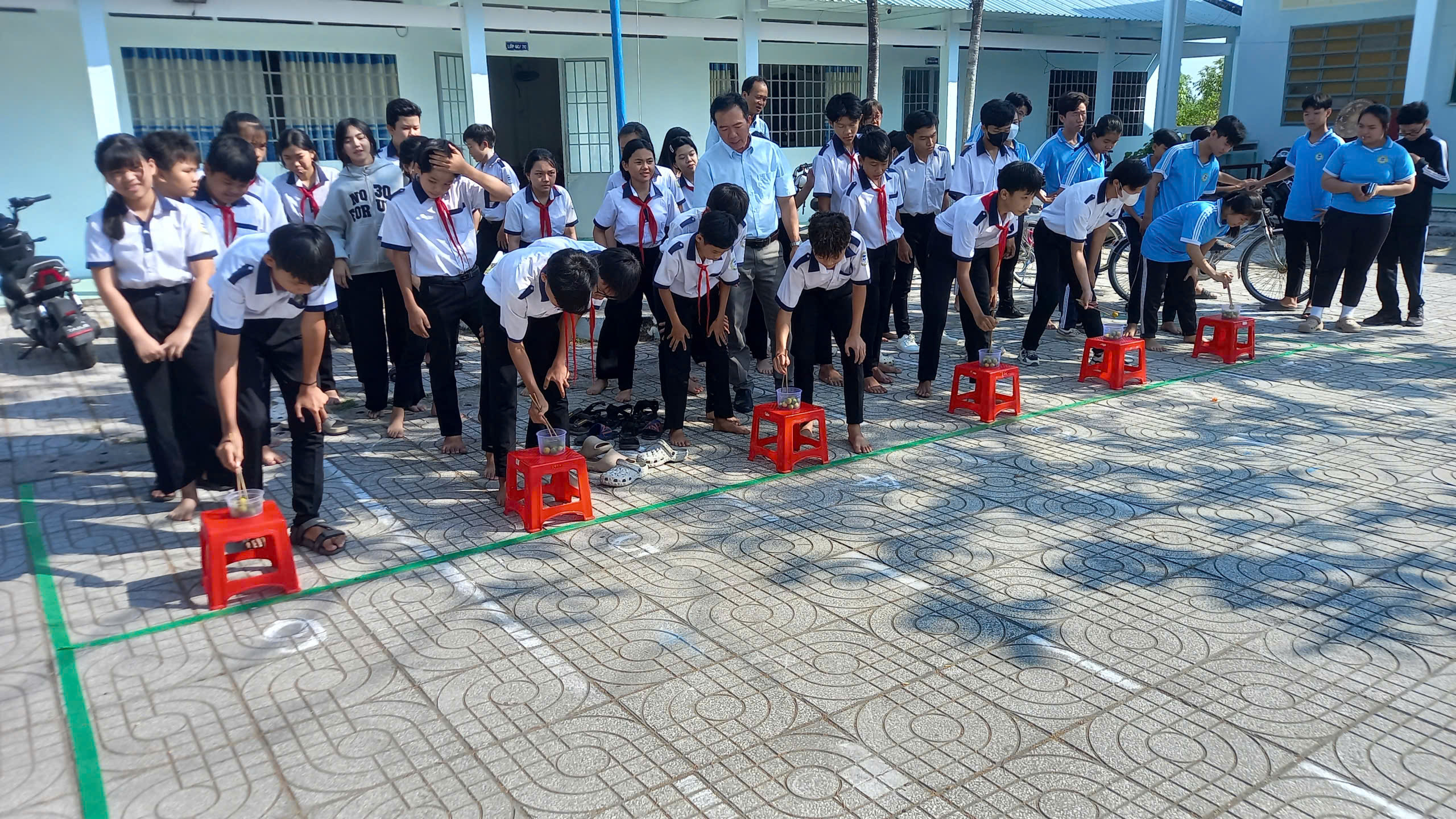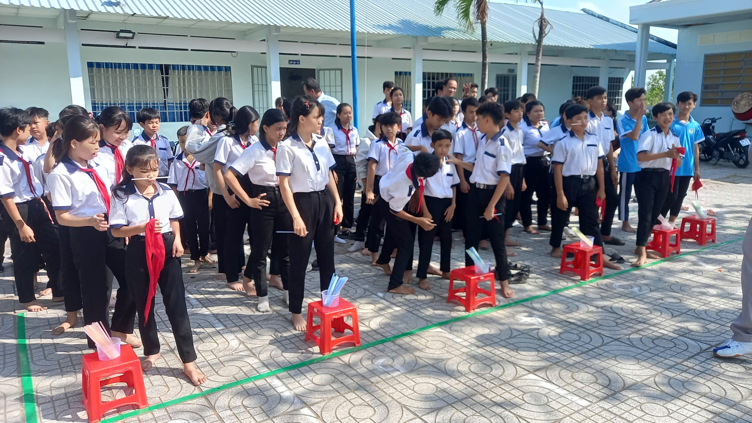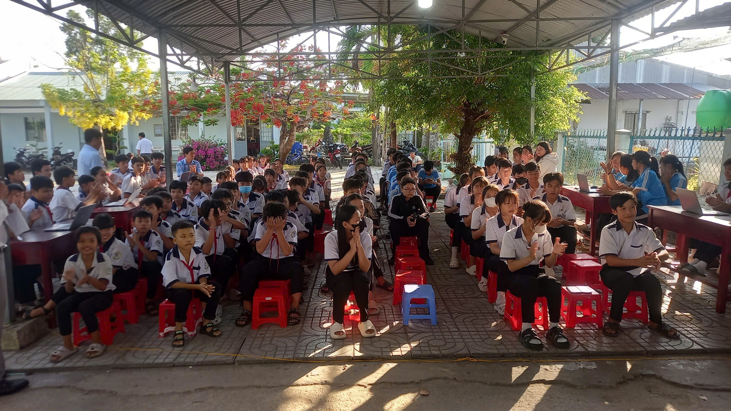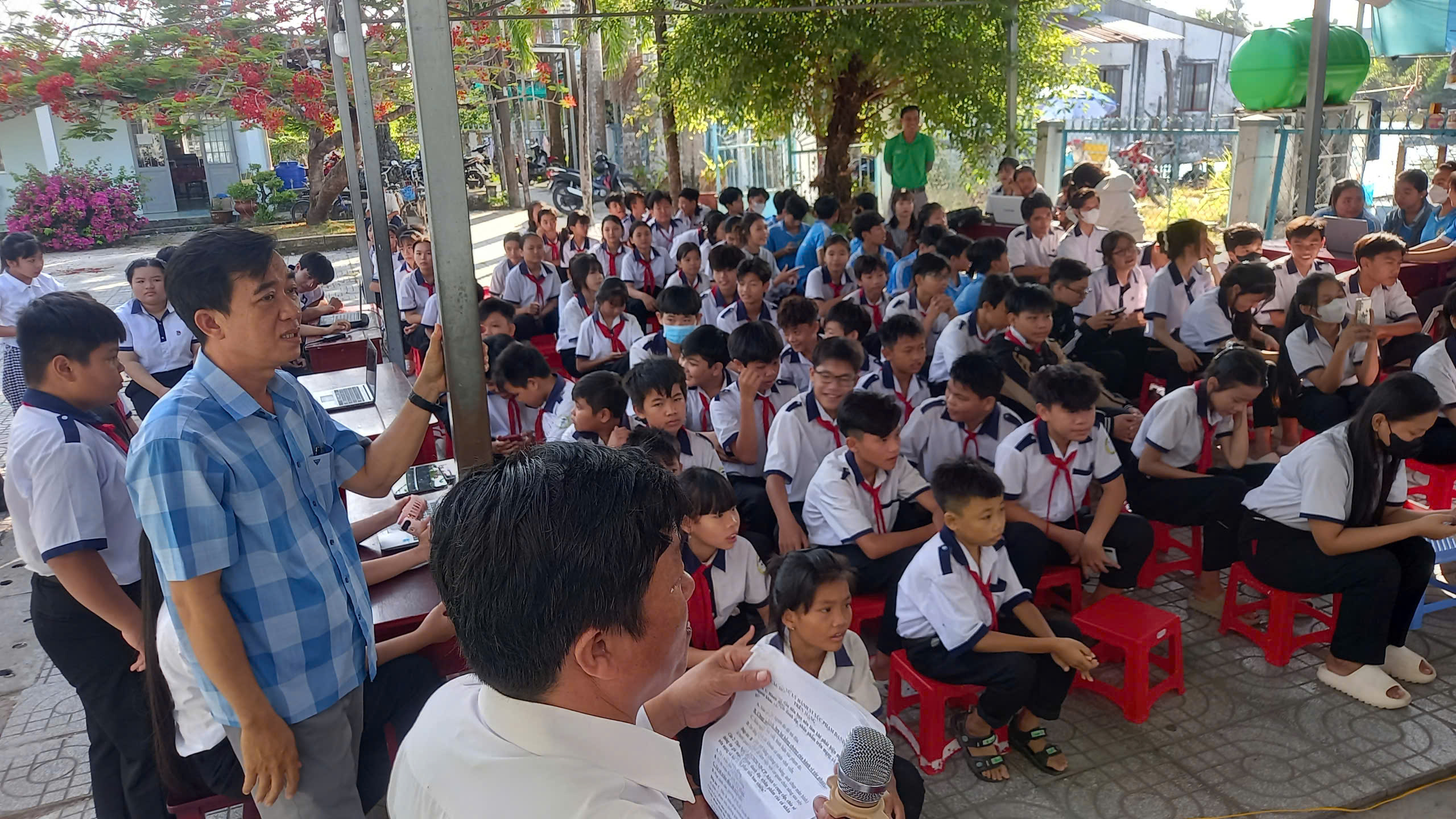 Sáng ngày 25.4.2026 tại trường TH&THCS Vĩnh Bình Nam, Chuyên môn nhà trường đã tổ chức chuyên đề ngoại khóa với chủ đề Kỷ niệm 51 năm Giải phóng miền nam thống nhất đất nước (30/4/1975-30/4/2026) qua việc tuyên truyền và thi trả lời gói câu hỏi theo đội (06 đội) với 15 câu hỏi trên phần mềm trực tuyến Quizizz bằng việc đăng nhập bằng laptop; đồng thời tuyên truyền, tìm hiểu, giao lưu bằng câu hỏi trtawsc nghiệm chủ đề An toàn an ninh mạng; giao lưu các tiết mục văn nghệ; chơi trò chơi dân gian gồm xe đạp chậm, cái mũi xinh xinh, gấp chanh bằng đũa….Kết thúc hoạt động Ban tổ chức đã tổng kết trao quà, phát thưởng cho các chi đội đạt giải. Đây là nội dung mà các em rất thích khi được tham gia, trường sẽ tiếp tục tổ chức nhiều nội dung, hoạt động hay trong thời gian tới để các em được tham gia vui chơi.
