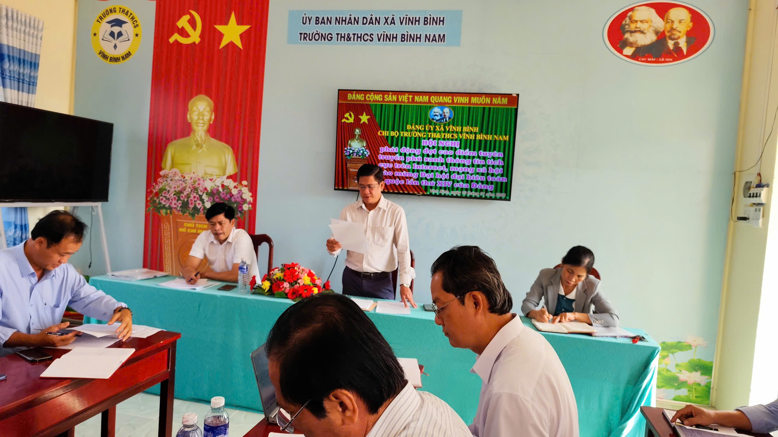 Sáng ngày 10/1/2026 tại Phòng hội trường Trường TH&THCS Vĩnh Bình Nam đã tổ chức buổi sinh hoạt chi bộ thường lệ, đồng thời lồng ghép nội dung tuyên truyền phủ xanh thông tin tích cực trên internets Chào mừng đại hội đảng toàn quốc. Tham gia phát động có đồng chí Nguyễn Trường An – Bí thư chi bộ, Ban chi ủy và toàn thể đảng viên về tham dự.