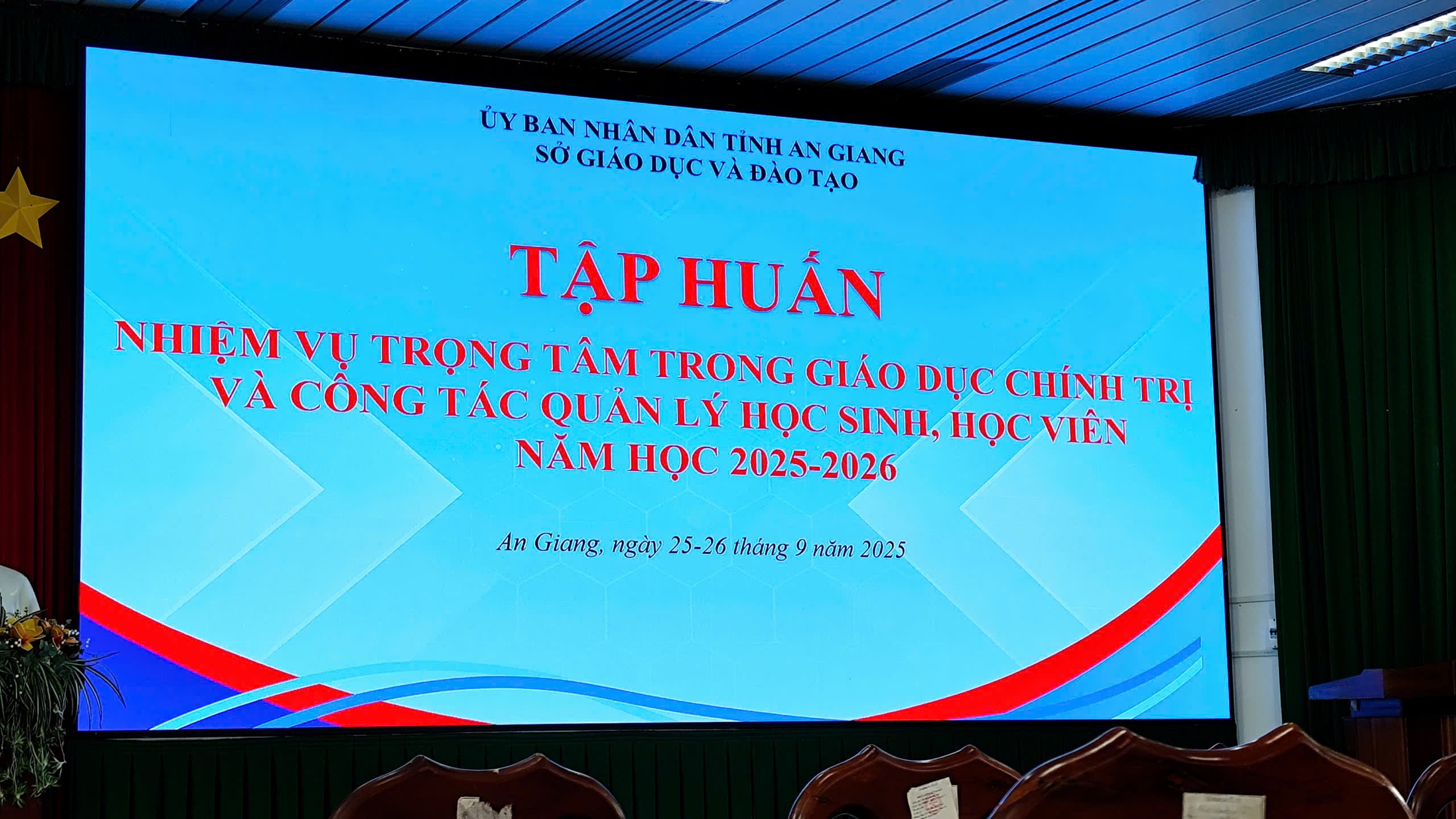 Vào lúc 07 giờ 30, ngày 25/9/2025. Tại Hội trường A, Sở GDĐT (địa chỉ: số 131, Đống Đa, phường Rạch Giá, tỉnh An Giang). Thầy Nguyễn Trường An (Hiệu trưởng), thầy Trần Đình Duy (Giáo viên) và thầy Bùi Trường Giang (Giáo viên Tổng phụ trách đội) của trường TH-THCS Vĩnh Bình Nam tham gia lớp tập huấn.