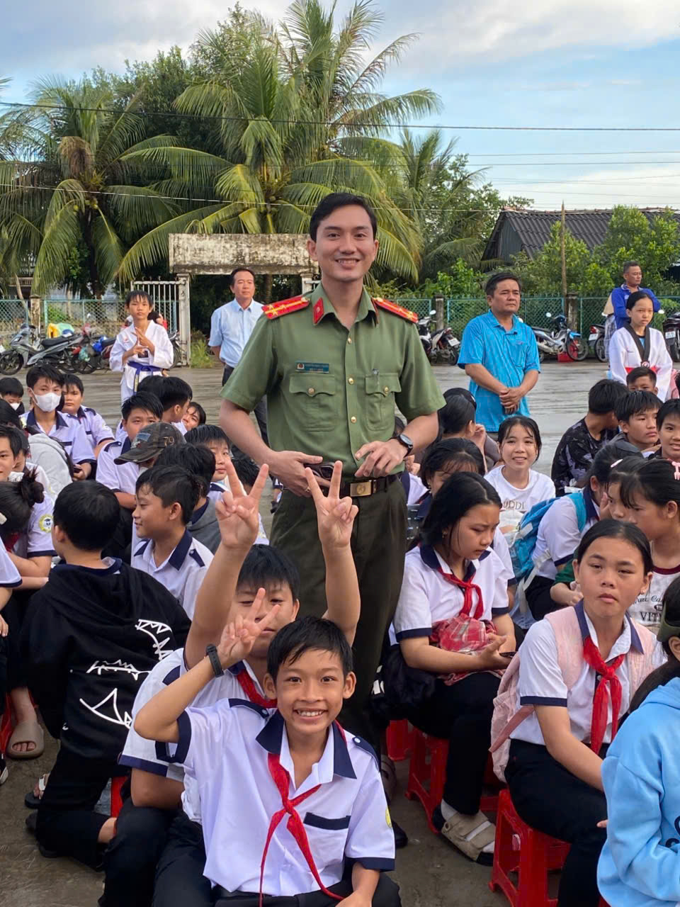 Hình ảnh các chiến sĩ công an trẻ hòa mình cùng thiếu nhi, tay trao quà, miệng nở nụ cười, ánh mắt rạng rỡ… đã để lại ấn tượng đẹp trong lòng phụ huynh, giáo viên và người dân địa phương.